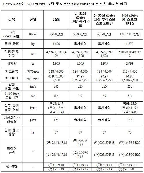BMW코리아는 21일, "BMW 325d와 뉴 320d xDrive 그란 투리스모, 640d xDrive M 스포츠 에디션 등 다양한 라인업을 확장해 출시한다"고 밝혔다.