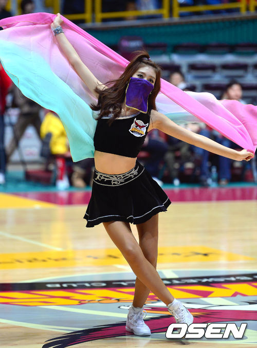 21일 오후 경남 창원시 두대동 창원실내체육관에서 열린 '2013-2014 KB국민카드 프로농구' 창원 LG와 서울 삼성의 경기에 앞서 LG 치어리더가 멋진 무대를 펼치고 있다