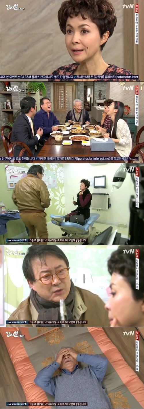 21일 오후 방송된 tvN '감자별 2013QR3'(이하 '감자별') 26회에는 노송(이순재 분)과 수동(노주현 분)의 놀림에 발끈한 왕유정(금보라 분)이 볼에 있던 왕 점을 빼는 모습이 그려졌다.