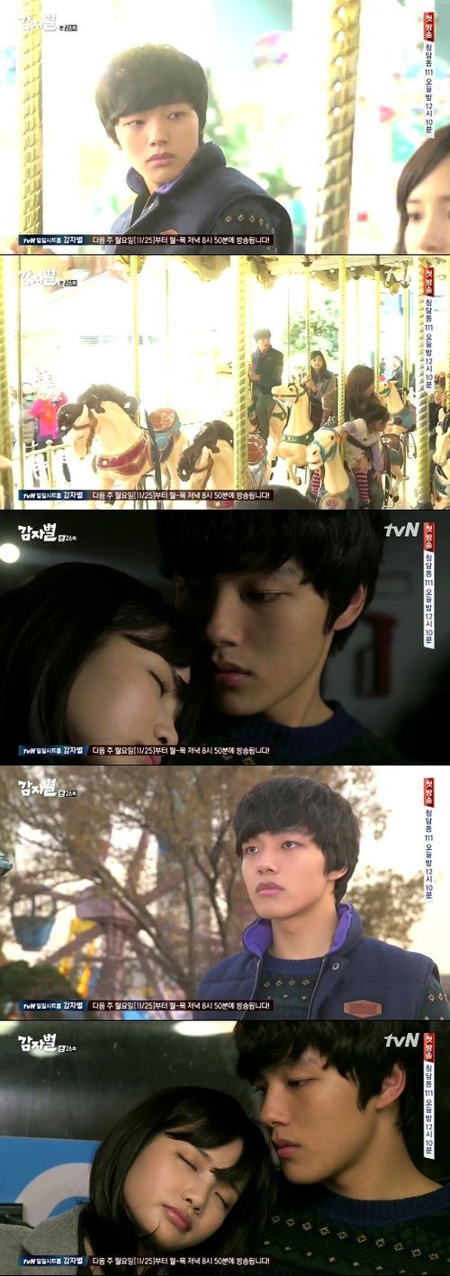 21일 오후 방송된 tvN '감자별 2013QR3'(이하 '감자별') 26회에는 홍혜성(여진구 분)과 나진아(하연수 분)가 놀이공원에서 데이트를 하는 모습이 그려졌다.