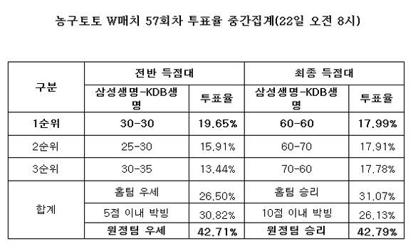 농구토토 W매치 57회차 투표율 중간집계 결과…42% KDB생명 승리 예상