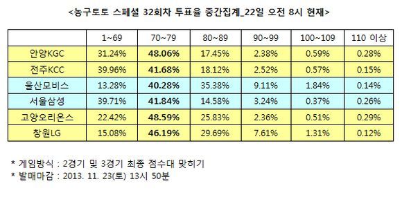 국내 프로농구(KBL) 3경기 대상 농구토토 스페셜 32회차 투표율 중간집계