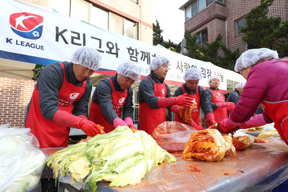 [OSEN=스포츠부] 한국프로축구연맹(총재 권오갑, 이하 '연맹')이 사회공헌활동의 일원으로 22일 'K리그와 함께하는 사랑의 김장 나눔' 행사로 이웃사랑을 실천했다.