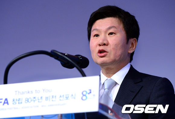 정몽규 대한축구협회장이 인사말을 하고 있다.