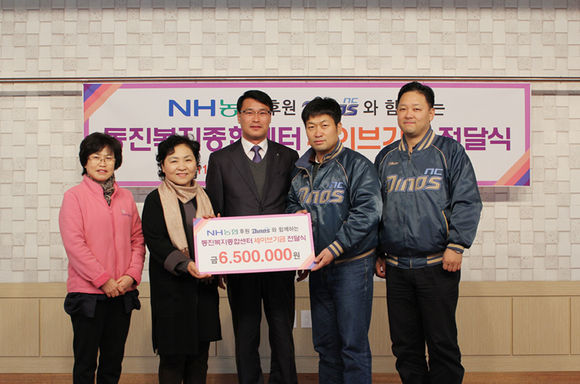 NC 다이노스가 22일 2013 프로야구 시즌 동안 NH농협은행 후원을 통해 적립된 650만 원을 경남 창원시에 위치한 동진노인복지센터에 전달했다고 밝혔다.