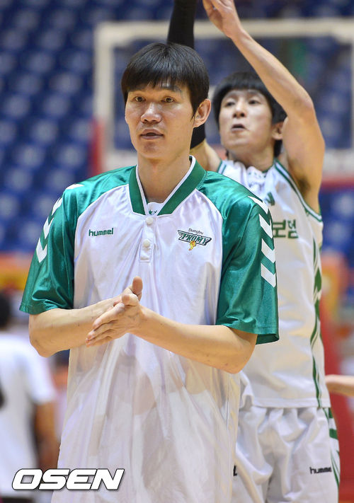 22일 오후 부산 사직실내체육관에서 열린 '2013-2014 KB국민카드 프로농구' 부산 KT와 원주 동부의 경기에 앞서 동부 김주성이 연습을 하고 있다.
