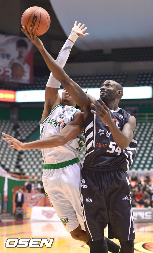22일 오후 부산 사직실내체육관에서 열린 '2013-2014 KB국민카드 프로농구' 부산 KT와 원주 동부의 경기, 1쿼터 KT 리처드슨이 레이업슛을 성공하고 있다.
