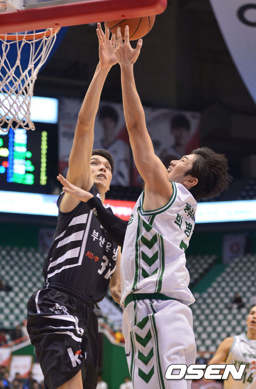 22일 오후 부산 사직실내체육관에서 열린 '2013-2014 KB국민카드 프로농구' 부산 KT와 원주 동부의 경기, 3쿼터 KT 장재석이 동부 박병우의 슛을 슛블록 성공시키고 있다.