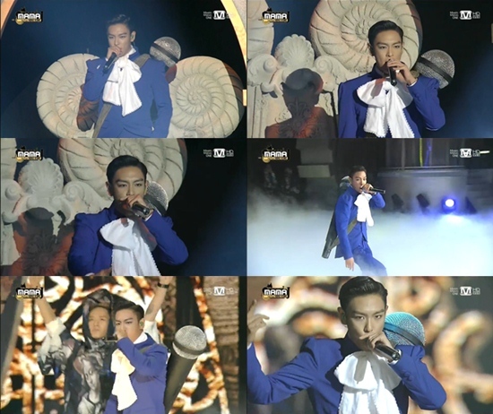 탑은 22일 오후 홍콩 아시아 월드엑스포 아레나에서 열린 '2013 엠넷 아시안 뮤직 어워즈(Mnet Asian Music Awards, 이하 2013 MAMA)'에서 신곡 '둠 다다(DOOM DADA)'의 무대를 처음으로 공개했다.