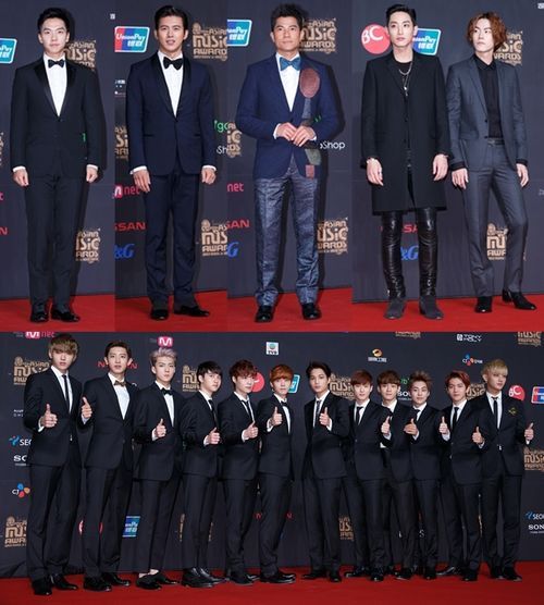 이날 엑소는 블랙수트를 입고 레드카펫에 등장해 팬들의 환호성을 자아냈다. 12명의 멤버들은 넥타이 혹은 보타이를 착용해 같은 듯 다른 느낌을 완성했다. 이승기와 고수도 레드카펫의 정석룩 블랙 수트에 보타이를 착용, 젠틀한 모습으로 여심을 흔들었다.