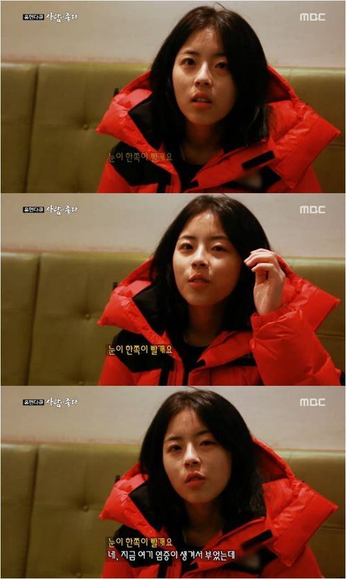 도희는 23일 방송된 MBC 다큐멘터리 ‘휴먼다큐 사람이 좋다’에서 제작진이 “눈이 빨갛다”라고 걱정하자 “눈 염증이 생겨서 부었다”고 미소를 지었다.
