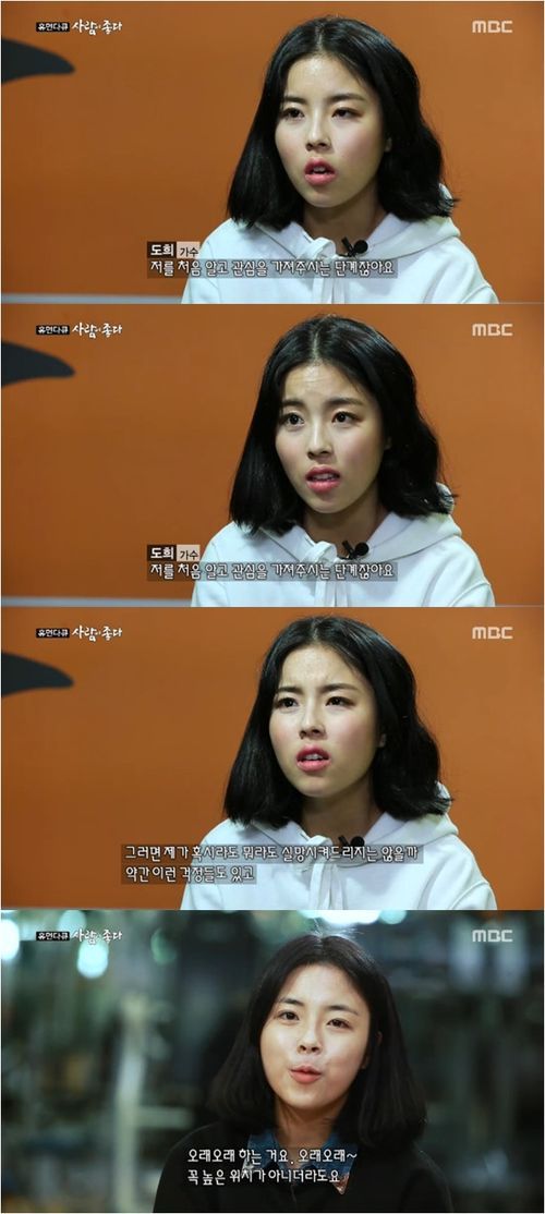 도희는 23일 방송된 MBC 다큐멘터리 ‘휴먼다큐 사람이 좋다’에서 “대중이 관심을 가져주시는 단계니깐 혹시나 내가 그들을 실망시킬까봐 걱정된다”고 솔직하게 말했다.