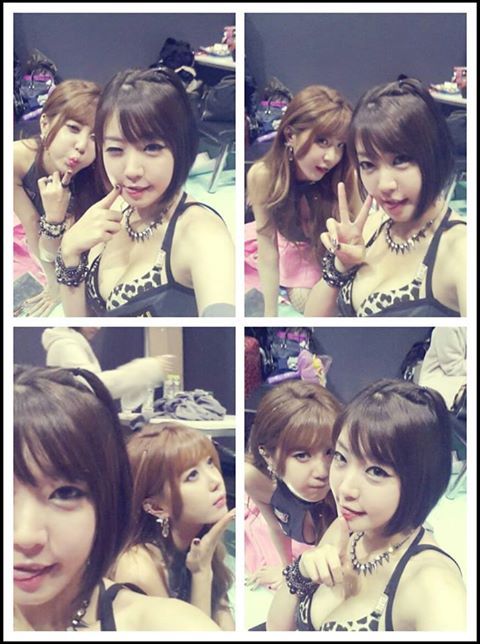 사진 속 육지혜는 가슴라인이 고스란히 드러나는 섹시한 의상을 입은 채 카메라를 바라보고 있다. 그의 옆에는 허윤미가 가슴이 보일듯말듯한 아찔한 포즈로 남성 팬들의 마음을 흔든다.