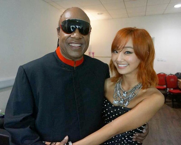 걸그룹 씨스타의 효린이 팝의 거장 스티비 원더와 함께 찍은 사진을 공개했다.