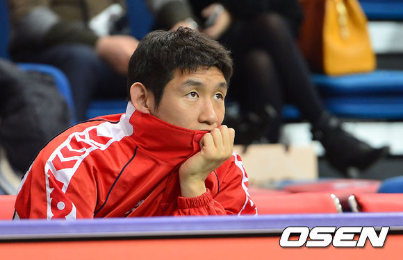 23일 오후 울산 동천실내체육관에서 열린 '2013-2014 KB국민카드 프로농구' 울산 모비스와 서울 삼성의 경기, 모비스 양동근이 선수들의 연습 모습을 지켜보고 있다.