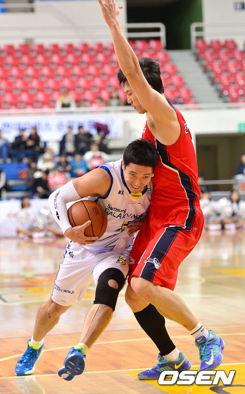 23일 오후 울산 동천실내체육관에서 열린 '2013-2014 KB국민카드 프로농구' 울산 모비스와 서울 삼성의 경기,1쿼터 삼성 이정석이 골밑 돌파 시도하고 있다