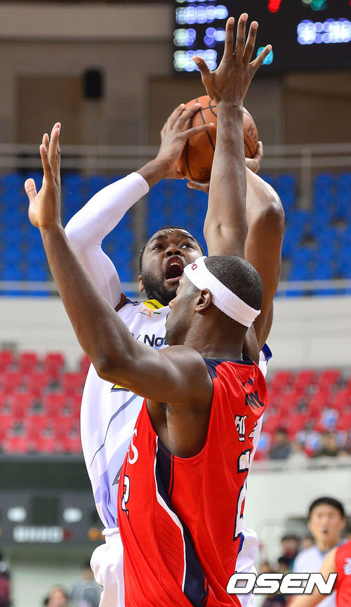 23일 오후 울산 동천실내체육관에서 열린 '2013-2014 KB국민카드 프로농구' 울산 모비스와 서울 삼성의 경기,2쿼터 삼성 존슨이 골밑슛을 성공하고 있다