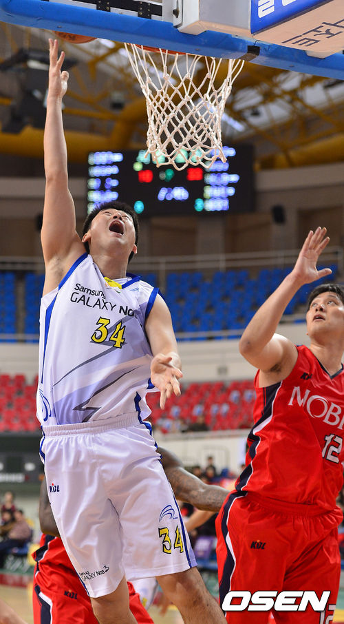 23일 오후 울산 동천실내체육관에서 열린 '2013-2014 KB국민카드 프로농구' 울산 모비스와 서울 삼성의 경기,2쿼터 삼성 김명훈이 리버스레이업슛을 성공시키고 있다