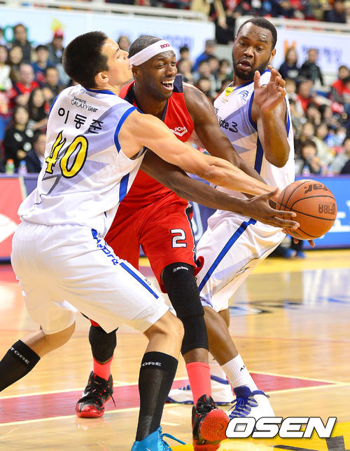 23일 오후 울산 동천실내체육관에서 열린 '2013-2014 KB국민카드 프로농구' 울산 모비스와 서울 삼성의 경기,3쿼터 모비스 벤슨이 패스 시도하고 있다.