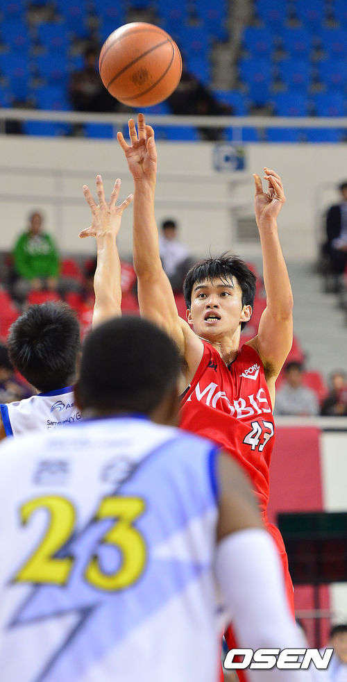 23일 오후 울산 동천실내체육관에서 열린 '2013-2014 KB국민카드 프로농구' 울산 모비스와 서울 삼성의 경기,4쿼터 모비스 이대성이 중거리슛을 시도하고 있다.