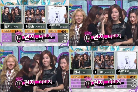 보컬 듀오 다비치가 신곡 '편지'로 23일 MBC '쇼!음악중심' 1위에 올랐다.