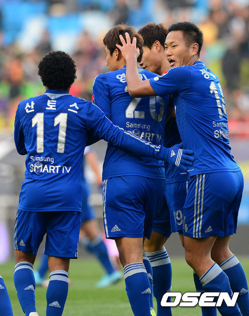 경기 초반 수원은 점유율에서 앞서나가며 끊임없이 울산의 문전을 위협했다. 하지만 전반 10분 정대세의 슈팅이 골대를 빗나가고, 전반 11분 산토스가 골키퍼와 1대1 상황에서 날린 슈팅이 김승규에게 잡히면서 좀처럼 골문을 열지 못했다.