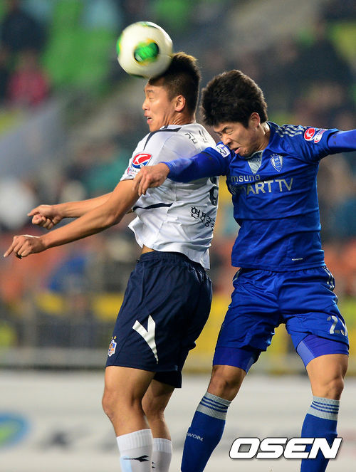 후반 울산 김신욱이 수원 구자룡과 공중볼을 다투고 있다.