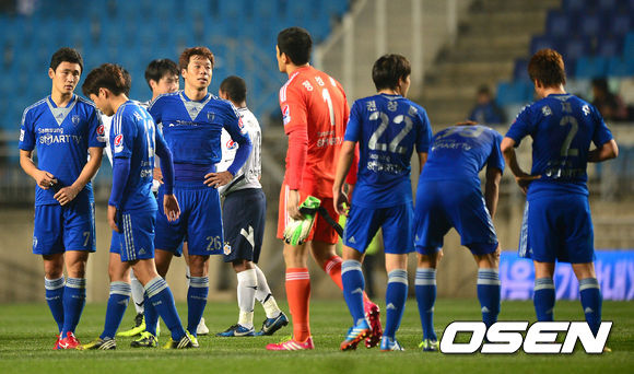 경기후 수원 선수들이 패배를 아쉬워하고 있다. /jpnews@osen.co.kr