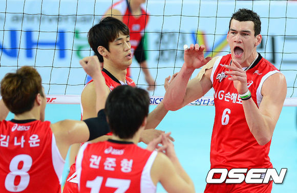 LIG손해보험은 23일 구미 박정희체육관에서 열린 NH농협 2013-2014시즌 V리그 남자부 1라운드 홈경기서 러시앤캐시를 세트 스코어 3-1(25-21, 22-25, 27-25, 25-21)로 꺾었다.