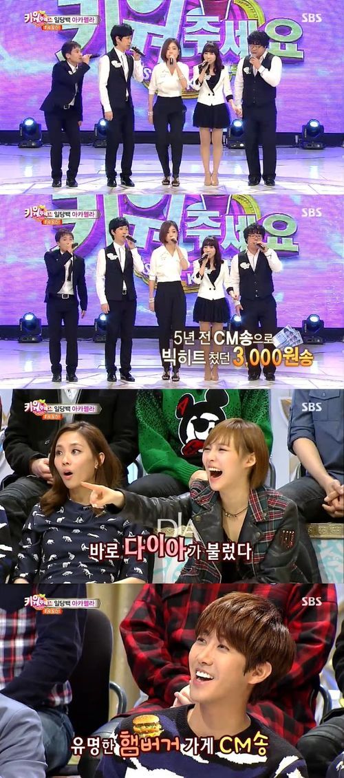 이에 강호동은 "이분들의 히트곡은 이미 여러분의 귀에 익숙할 것이다"라고 말했고, 이들은 과거 햄버거 CM송으로 사용됐던 '삼천원송'을 불러 출연진으로부터 박수를 받았다.
