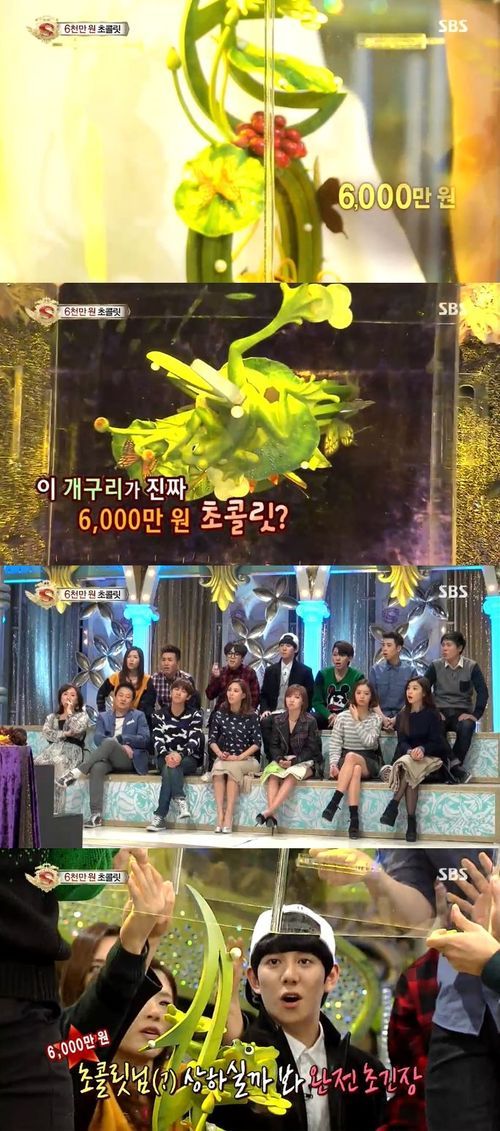 이날 '스타킹' 출연진은 무대 중앙에 설치된 작품이 6천만 원짜리 초콜릿이라는 말에 "초콜릿 같지 않다", "도자기 같다"며 놀라움을 표했다.