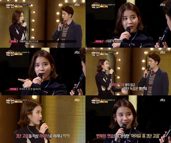 아이유는 23일 오후 방송된 JTBC '히든싱어 시즌2(이하 '히든싱어2')'에서 "처음에는 장난식으로 라이브 생각안하고 녹음을 했었다"라며 3단 고음 탄생 비하인드 스토리를 밝혔다.