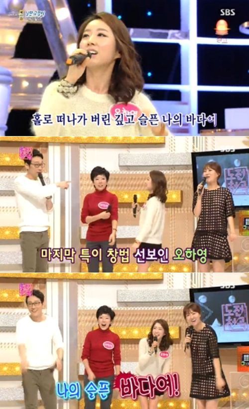 한편 이날 '도전천곡'에는 오하영 외에 정한용, 가희, 이익선, 유미, 박휘순, 윤성호, 오경수 등이 자리했다.