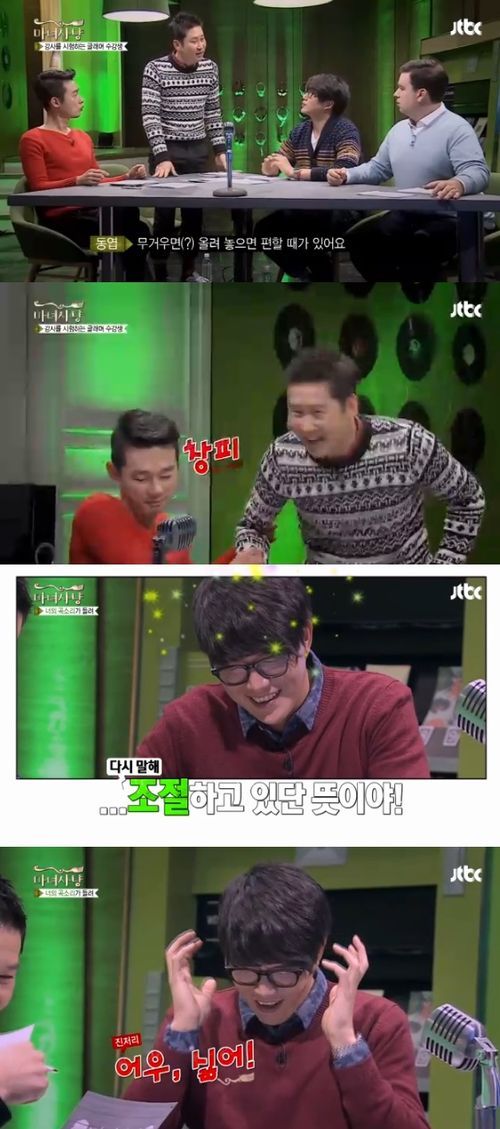 지난 22일 방송에서는 재수학원의 한 여학생이 가슴을 책상 위에 올려놓고 노골적으로 선생님을 유혹한다는 사연이 공개됐는데, 신동엽은 자리에서 일어나 테이블에 다가가 바짝 서서 “무거우면 올려놓으면 편할 때가 있다”고 특정 신체부위의 크기를 표현해 민망함을 자아내기도 했다.