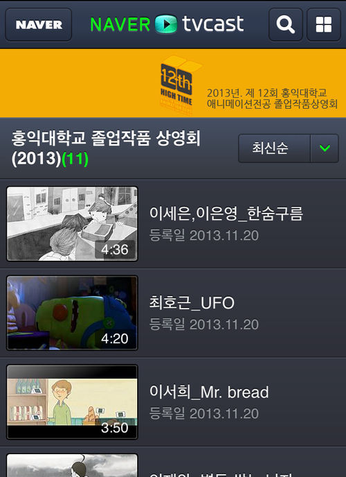 홍익대학교 염동철 주임교수는 “그 동안 졸업작품 상영은 대학과 졸업생, 동문, 관련 산업체들 위주의 행사였는데, 이번 네이버 TV캐스트 상영을 통해 일반 네티즌에게도 실험적이고 창의적인 홍익대학교 졸업작품을 소개할 수 있는 좋은 계기가 될 것으로 기대한다”고 말했다.