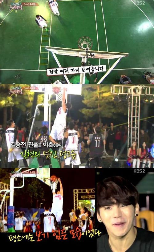 김혁은 결승전 말미 원핸드 덩크슛으로 출연진과 관객들을 놀래켰다. 그의 덩크슛은 골대가 돌아갈 정도로 강렬했다.