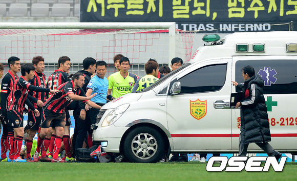 FC서울은 24일 서울월드컵경기장에서 벌어진 2013 현대오일뱅크 K리그 클래식 38라운드에서 부산 아이파크를 맞아 올 시즌 마지막 홈경기를 치렀다. 그런데 경기시작 후 단 2분 만에 불상사가 벌어졌다.