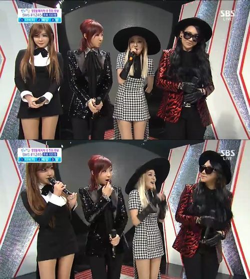 2NE1은 24일 방송된 SBS '인기가요'에서 컴백 무대에 앞서 팬들과 인사말을 건냈다.