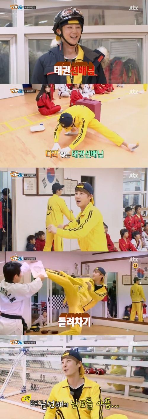 이날 신혜성은 전진과 함께 태권도장으로 배달을 나갔다. 도장에 도착한 전진은 “신혜성 씨가 태권도 공인 4단으로, 미국에서 시범단이었다”고 밝혔다.