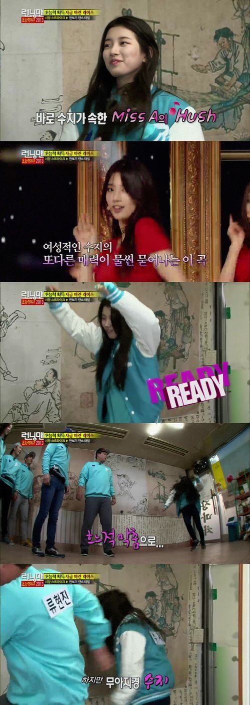 수지는 미쓰에이의 ‘허쉬(Hush)’ 노래가 흘러나오자 무대 위에서 선보였던 섹시한 모습과는 달리 코믹한 막춤을 추기 시작했다.
