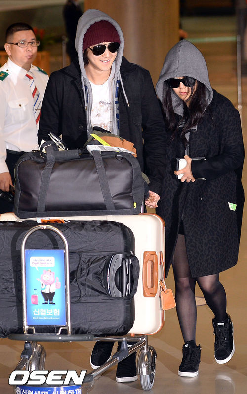 김범, 문근영은 25일 오후 3시 10분께 인천국제공항을 통해 귀국했다. 이들은 커플룩을 갖춰 입고 손을 꼭 잡은 채 당당히 애정을 과시했다.