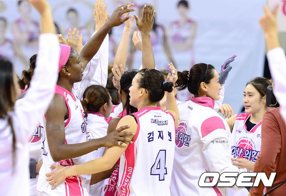 경기 종료 후 하나외환 선수들이 승리의 기쁨을 나누고 있다./sunday@osen.co.kr