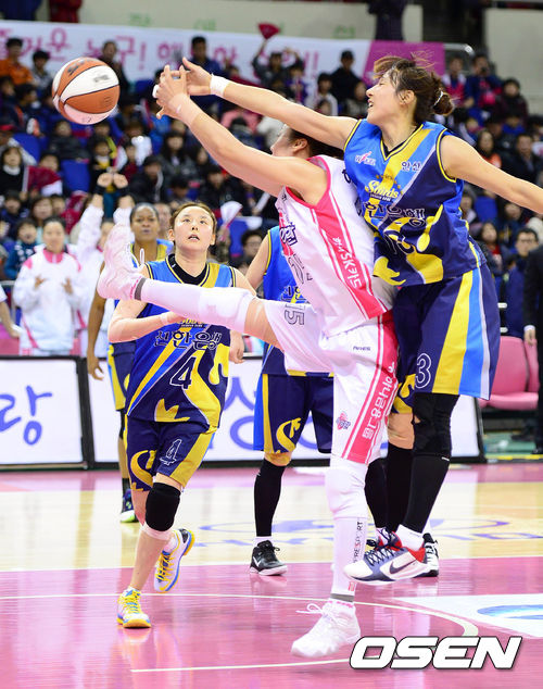 4쿼터 하나외환 허윤자가 신한은행 김단비의 반칙에 당하고 있다./sunday@osen.co.kr
