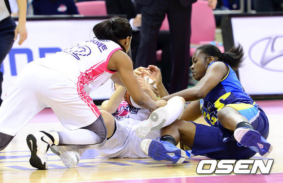 4쿼터 양팀 선수들이 루즈볼 다툼을 하고 있다./sunday@osen.co.kr