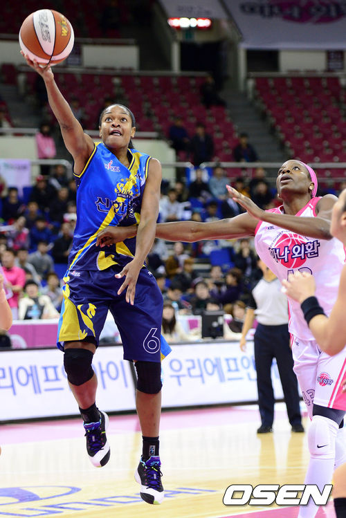 1쿼터 신한은행 엘레나 비어드가 레이업슛을 시도하고 있다./sunday@osen.co.kr