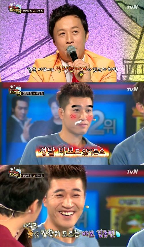 김종민의 출연에 MC 정준하는 “같은 바보에도 영리한 바보, 진짜 바보 등 다양한 종류의 바보가 있다"라며 김종민은 진짜 바보라고 평가해 웃음을 자아냈다.