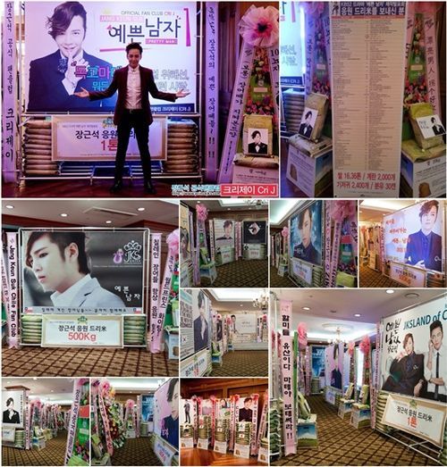 이날 행사장에는 장근석의 팬들이 보내온 각종 화환들이 긴 행렬을 이루며 발 디딜 틈이 없었다. 진열된 화환은 쌀화환만 총 16.66톤에 달했으며 이외에도 계란, 기저귀, 분유 등 다양한 물품으로 이루어진 화환들이 시선을 집중시켰다. 이처럼 다채로운 물품들이 화환으로 기부된 것은 이례적인 일이라고.