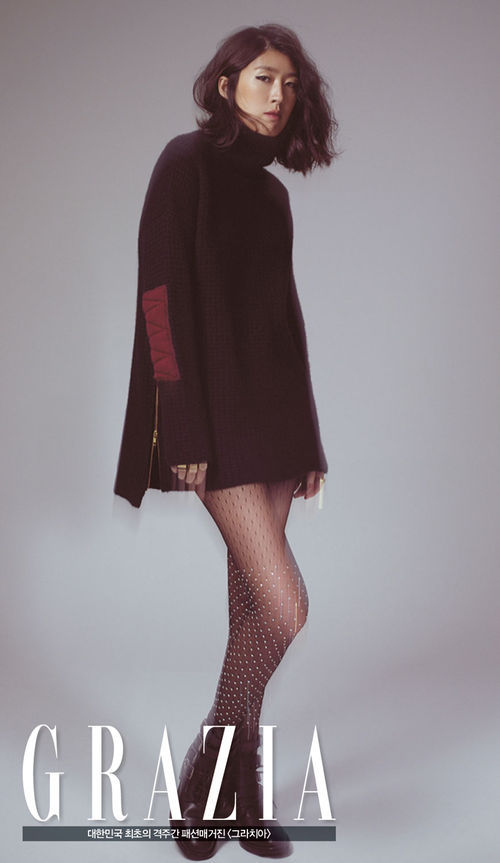 홍진경은 최근 패션 매거진 '그라치아' 12월호를 통해 짧은 니트 원피스를 입고 아찔한 하의실종 패션을 선보였다.