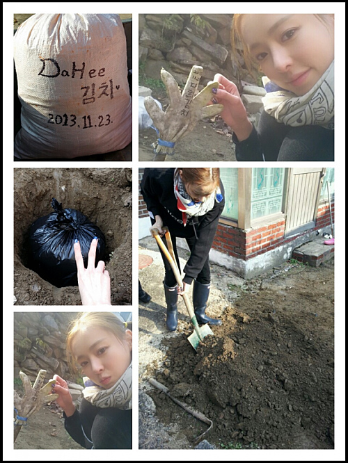 이다희는 지난 23일 자신의 미투데이에 "오늘 새벽부터 일어나서 할머니 댁으로 언니랑 고고(gogo). 일 년에 한번 집안의 대행사 김장을 하는 날! 올해도 다희 김치는 따로 묻어 놓고왔다. 아빠 도와줘서 고맙습니다. 맛있게 푹 익어라 다희 김치야"라는 글과 함께 사진을 올렸다.