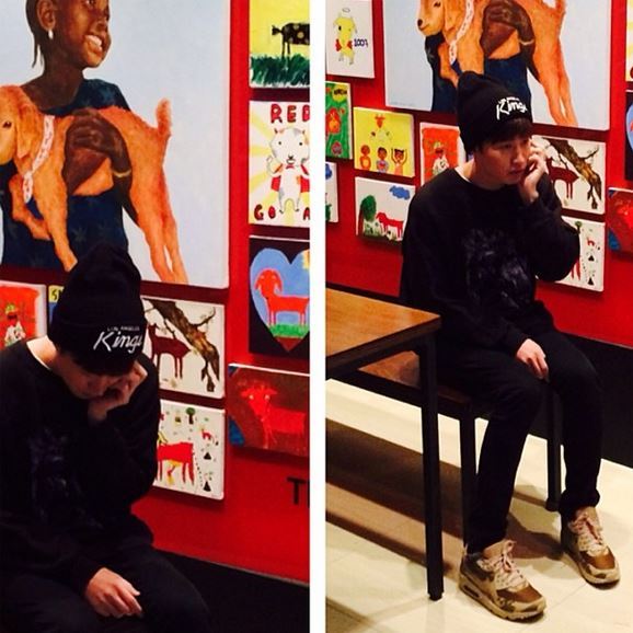 공개된 사진 속 타블로는 검정 옷에 검정 비니를 쓰고 누군가와 통화를 하고 있다. 활동적인 차림이 잘 어울린다.